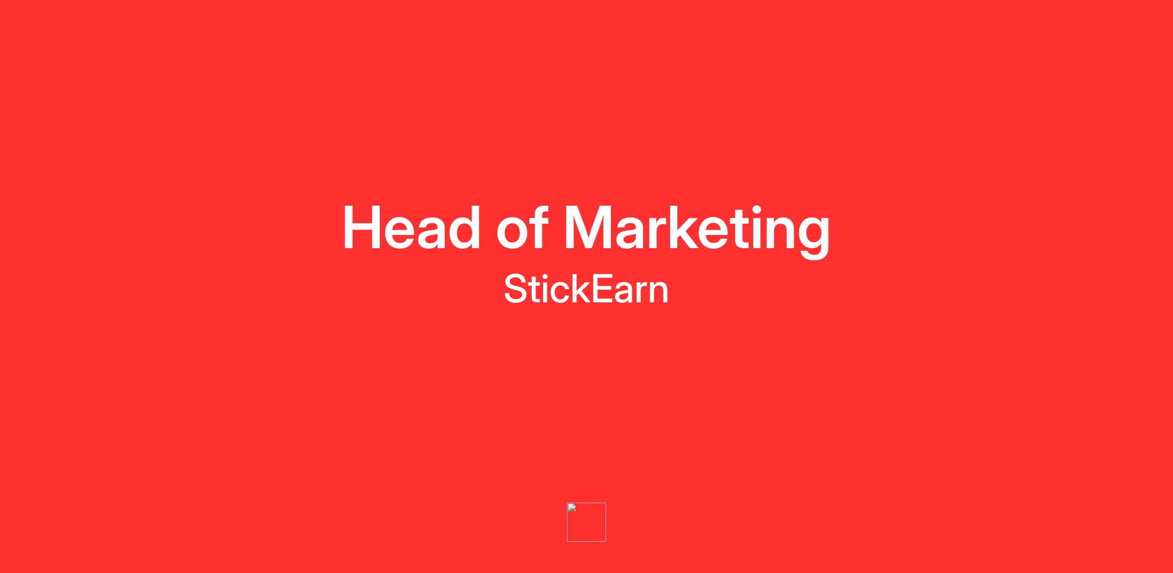 đ Weâre Hiring: Head of Marketing at StickEarn!