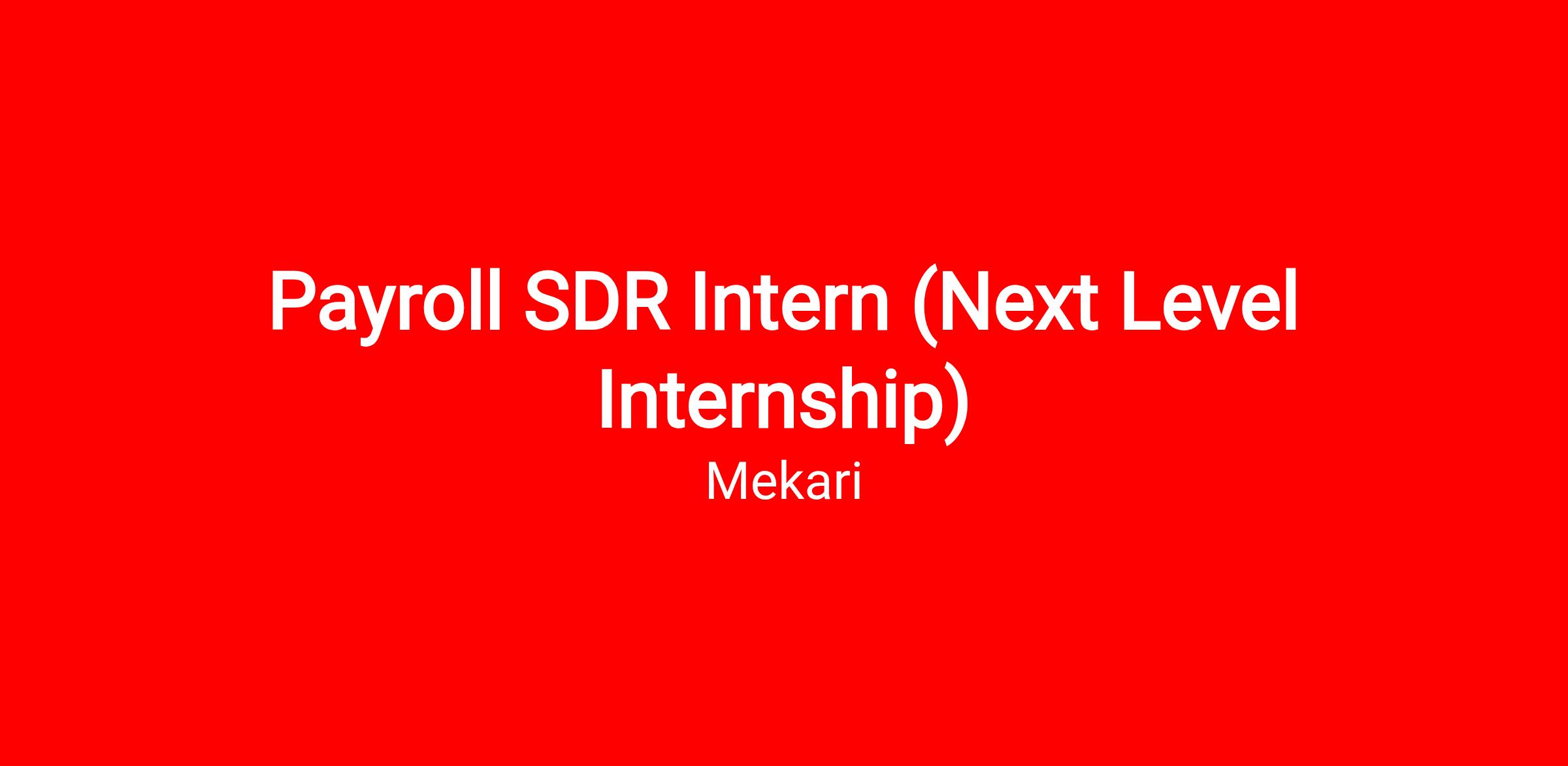 By applying through this opening, you are applying specifically for the role of Payroll SDR Intern: