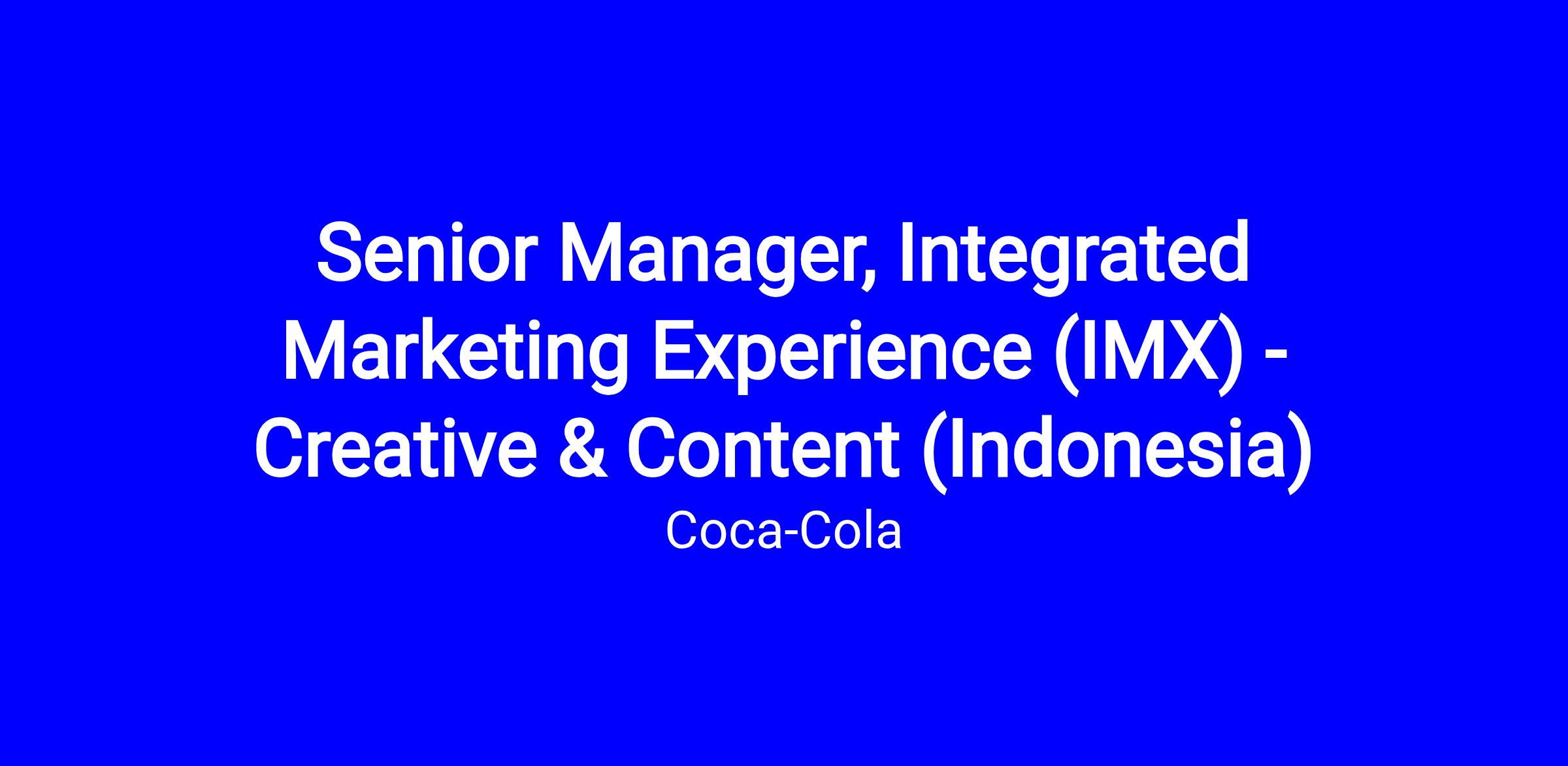 Senior Manager, Integrated Marketing Experience (IMX) - Creative & Content (Indonesia)