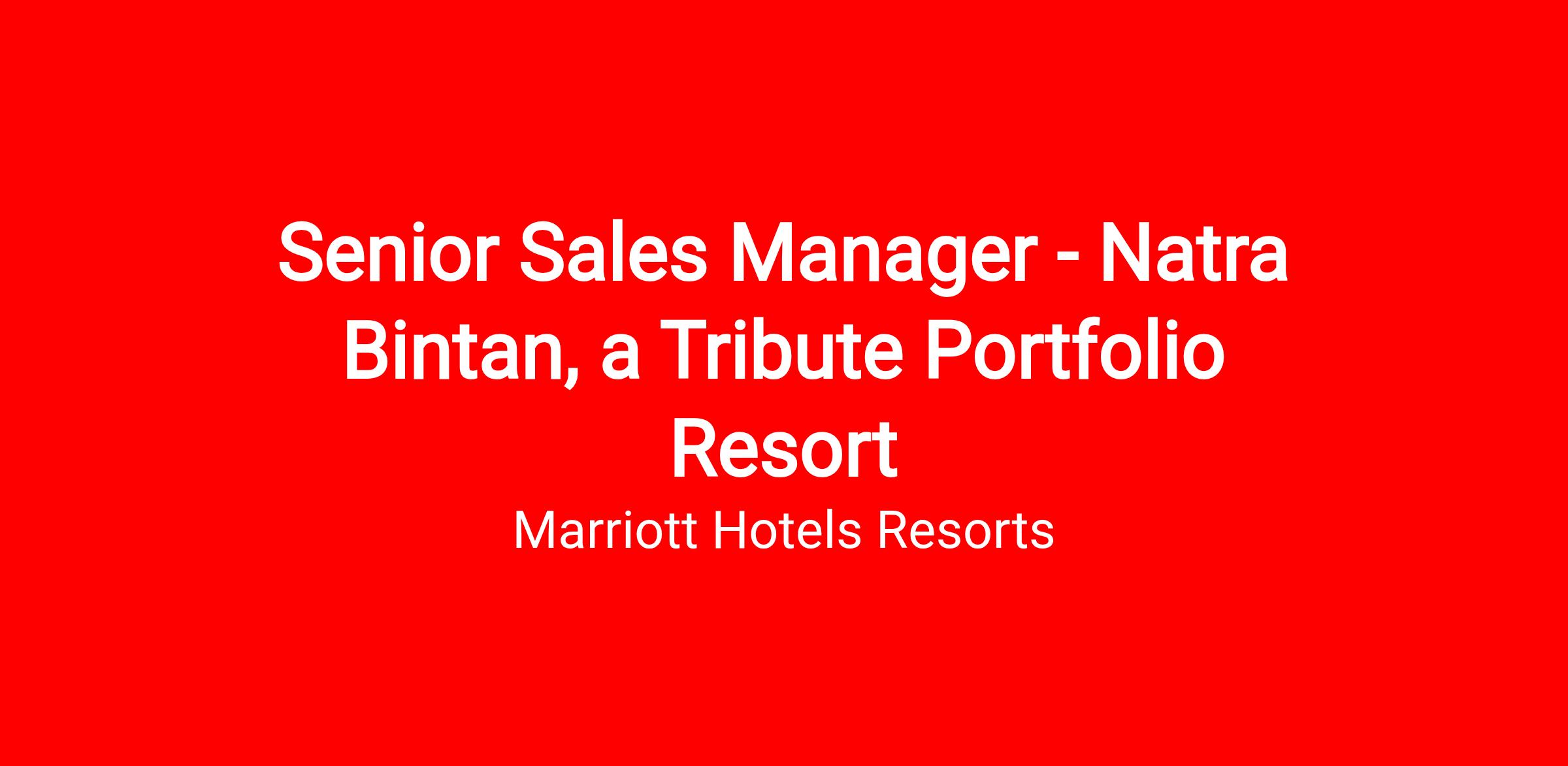 Senior Sales Manager - Natra Bintan, a Tribute Portfolio Resort