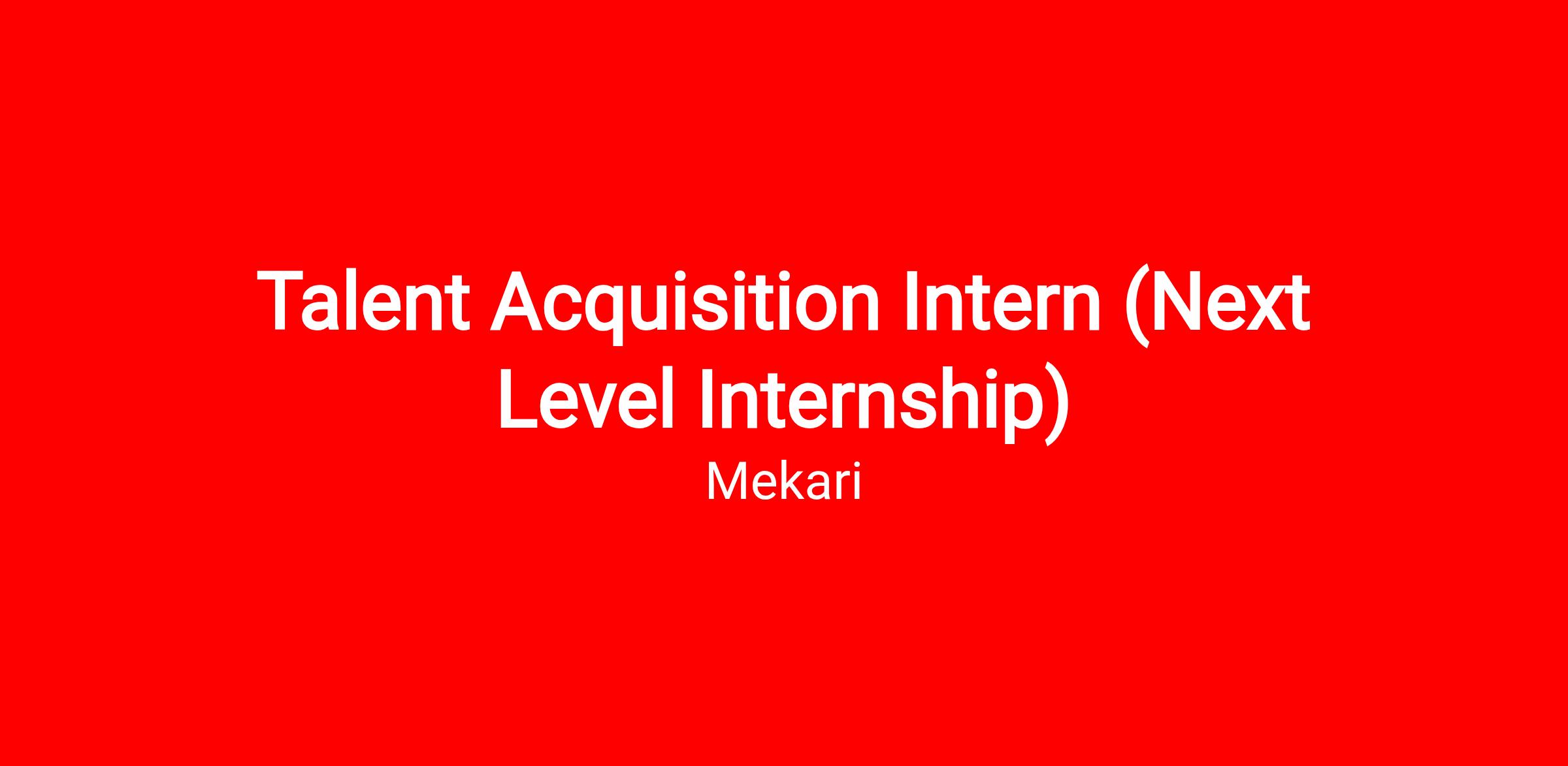 By applying through this opening, you are applying specifically for the role of Talent Acquisition Intern: